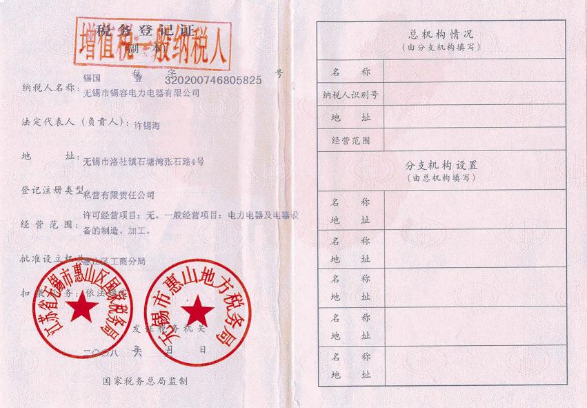 Tax registration certificate release time:2020-07-20 04:34:39source:Wuxi Xirong Electric Appliance Co., Ltd.Click:1883